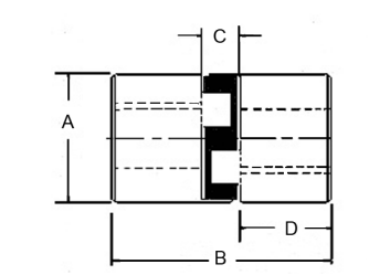 | Catalog Number | Hub Dia (A) | Overall Length (B) | Distance Between Flanges (C) | Length Thru Bore (D) | Bore Min | Bore Max | Apx. Weight (lb) |